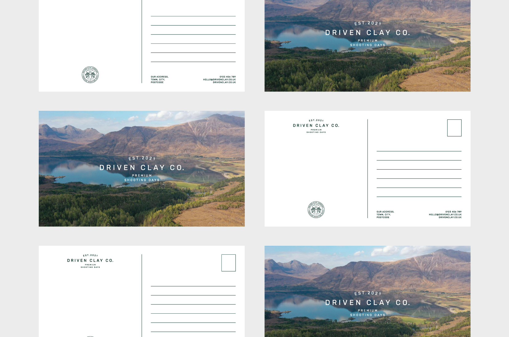 To bring the brand to life, we developed a complete identity system from the ground up. The name ‘Driven’ captures the determination, expertise and forward motion of the sport itself — a word that conveys both movement and mastery. The logo takes inspiration from heritage gunmakers, balancing classic British craftsmanship with contemporary refinement. A crest-style emblem — depicting a poised spaniel within a traditional shield — anchors the identity, echoing values of precision, tradition and trust.